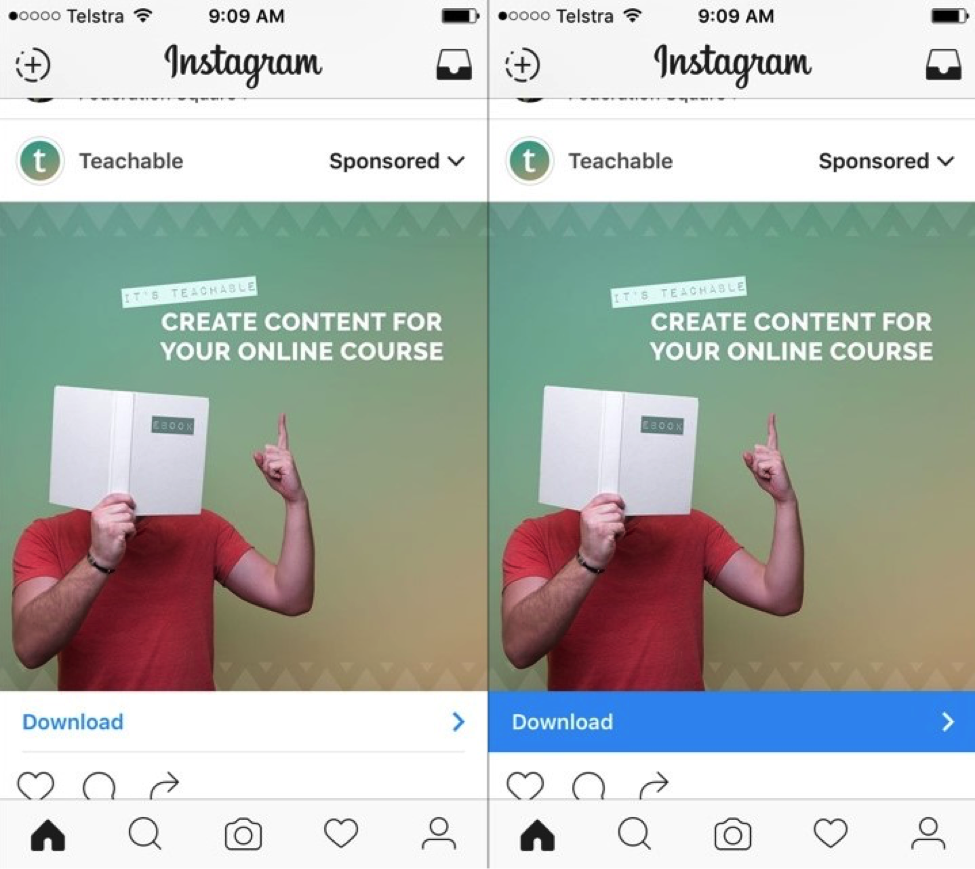 As you can see, the call-to-action button is now spread across the entire width. It makes more prominent and in-line with the Instagram design.