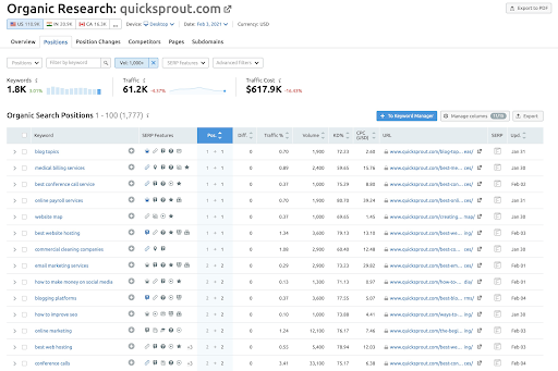 For example, if you are using SEMRush, you can simply paste your competitor’s URL and run an organic research report. SEMRush will pull a list of all the keywords that the website is ranking for.