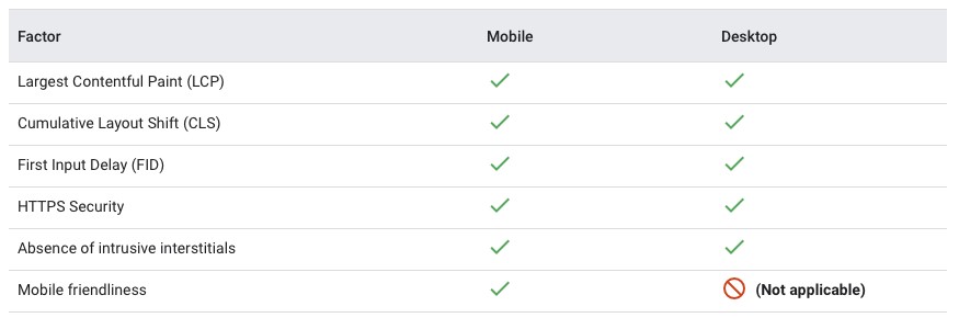 “This means the same three Core Web Vitals metrics: LCP, FID, and CLS, and their associated thresholds will apply for desktop ranking. Other aspects of page experience signals, such as HTTPS security and absence of intrusive interstitials, will remain the same as well.”