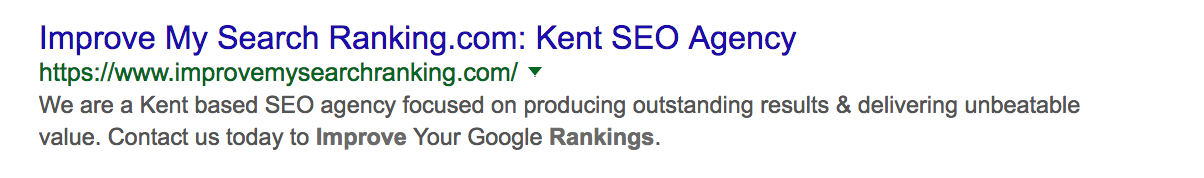 It is important to include the keyword or phrase within the metadescription due to the boldening that occurs in the snippet of the search results. In the example below “SEO Kent” has been searched for.