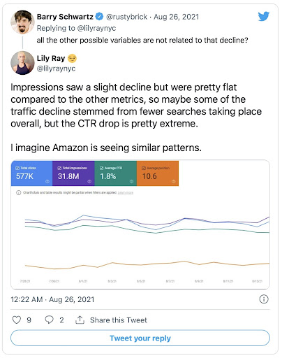According to Lily, most of the loss in traffic is due to lower CTR.
