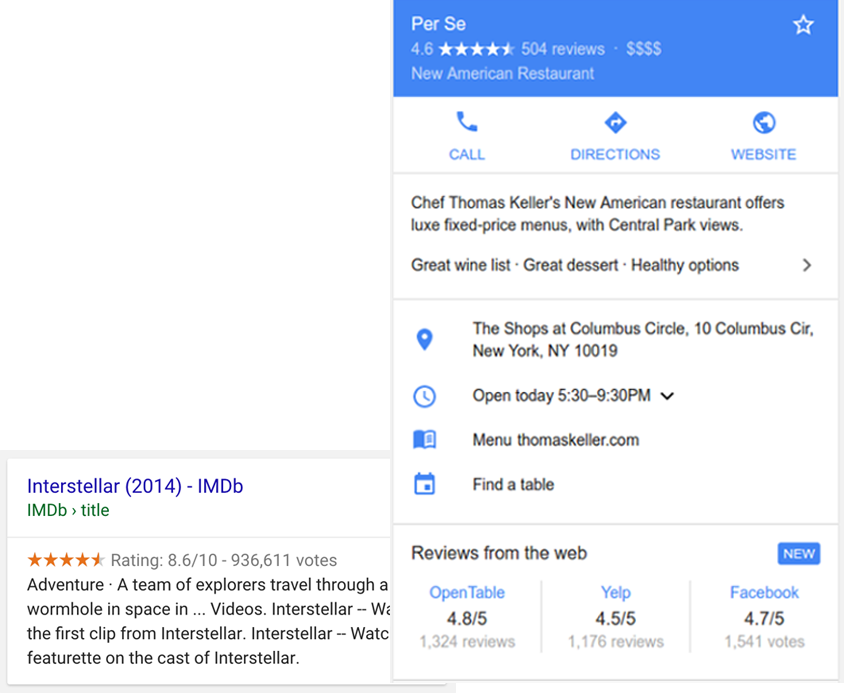 “A review snippet is a short excerpt of a review or a rating from a website, usually an average of the combined rating scores from many reviewers. This is one of the most used structured data types on the web, used by millions of web sites for many content types such as Book, Movie, Event, Product, and more.”